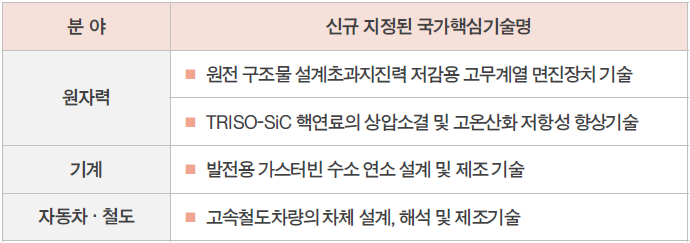 1. 국가핵심기술로 신규 지정된 기술