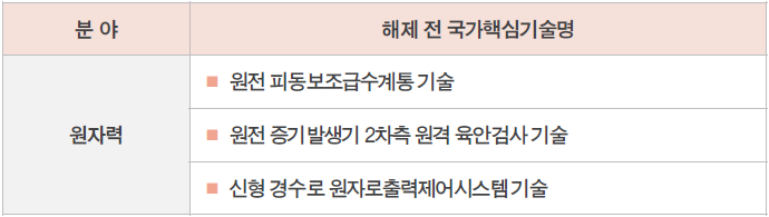 일반화되었거나 보편화되어 보호 필요성이 낮아진 원자력 분야 총 3개 기술이 국가핵심기술에서 해제되었습니다.