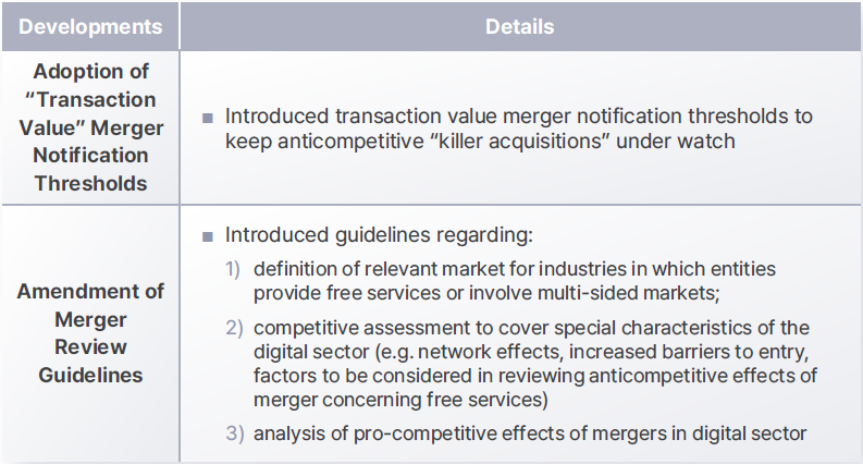 Save for introducing separate thresholds for the presumption of market dominance and increasing the maximum amount of administrative fine, the proposed legislation plan on online platform regulation in the KFTC’s new roadmap, in general, is a clarification of the rules in KFTC’s Guidelines for Review of Online Platform Operators’ Abuse of Market Dominance. Further considering that only a very limited number of online platform operators would be captured as market dominant players under the new thresholds of market dominance presumption, and that the KFTC was already able to investigate online platform-specific abuses of market dominance (e.g., self-preferencing) with existing laws and regulations, the proposed legislation plan in the KFTC’s new roadmap is less likely to result in substantial change in the online platform regulation landscape.