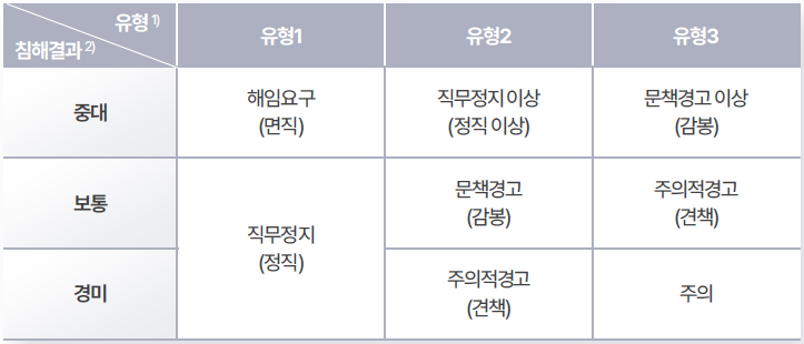 한편, 종전에는 적합성 원칙 위반, 설명 의무 불이행, 무자격자에 의한 투자 권유 등의 경우에는 임직원에 대한 양정 기준이 부당 권유보다 낮았으나, 금번 개정으로 모든 유형에 대하여 동일한 양정 기준을 적용하도록 하였습니다.