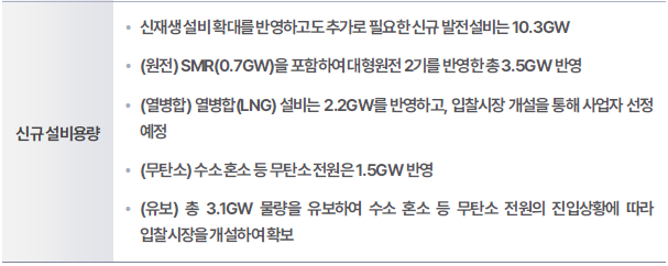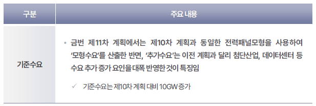 ■ 이차전지 등 첨단산업 및 전기화 등의 신규 수요를 과학적으로 반영하여 신규 필요 설비가 10.3GW로 제10차 계획(1.7GW)에 대비 크게 증가하였습니다.