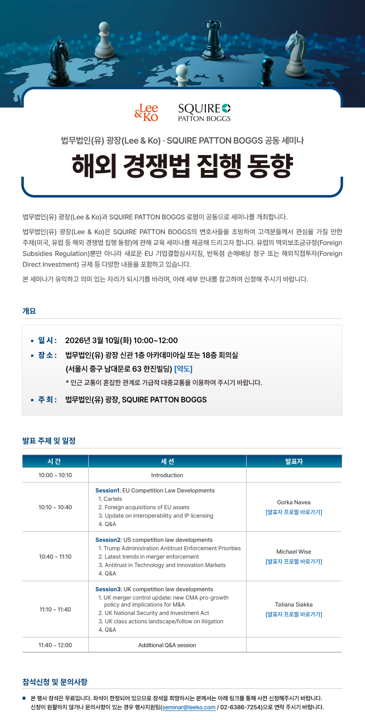행사명법무법인(유) 광장(Lee & Ko)ᆞSQUIRE PATTON BOGGS 공동 세미나 - 해외 경쟁법 집행 동향