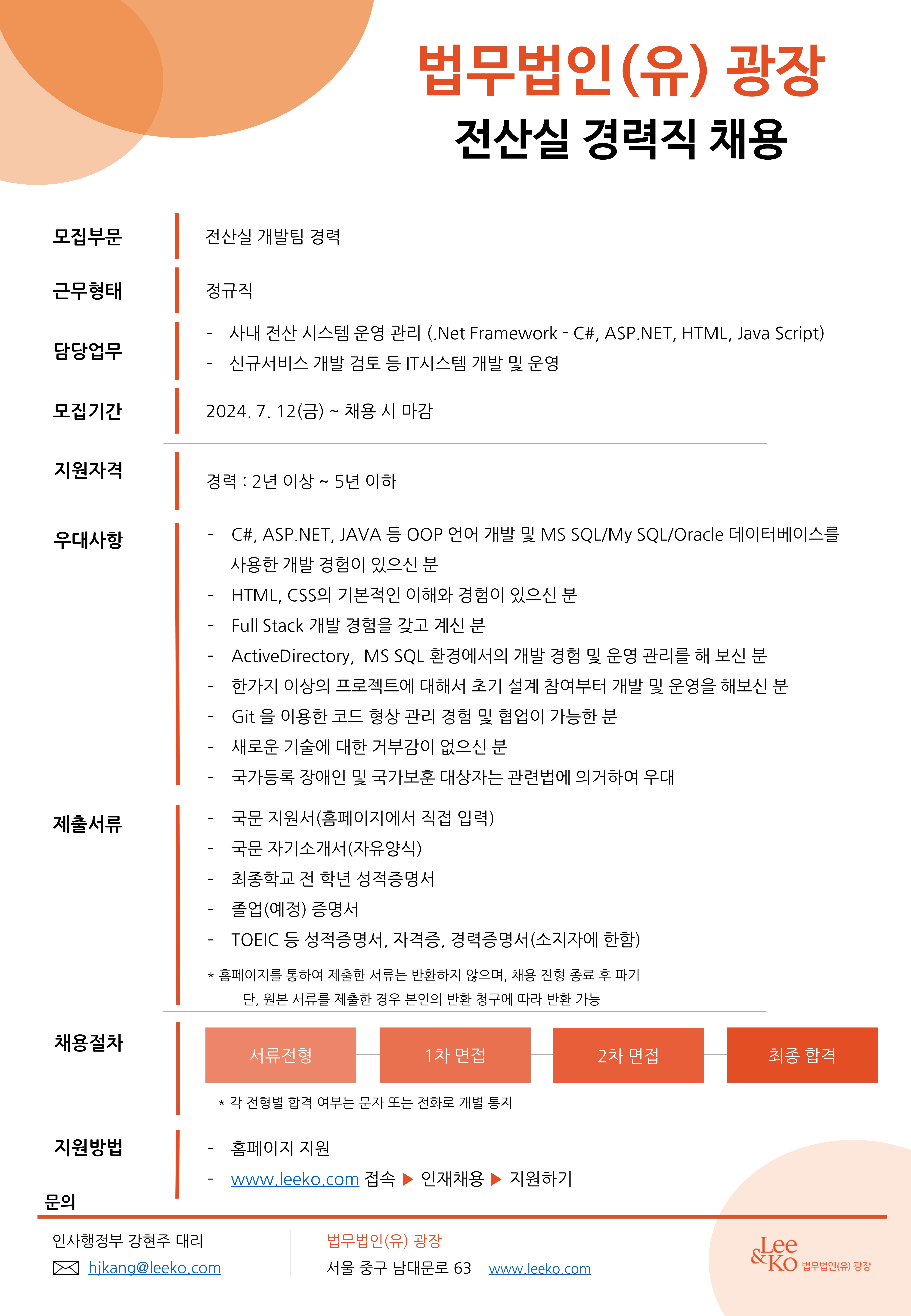 * 지원서 검색이 되지 않으실 경우 recruit2@leeko.com 문의해주세요